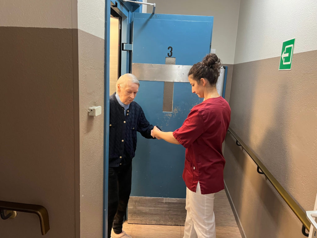 Après ce beau moment, il est temps de se reposer avant de manger. Kristel raccompagne Eliane dans sa chambre. Celle-ci a fait une chute il y a deux semaines. Elle réapprend doucement à marcher sans peur.