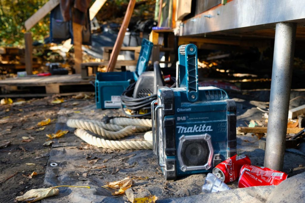 Au retour de Noureddine, on discute tous les deux, bercés par la radio qui tourne sur la Makita de Gino. « J’ai perdu ma santé, ma compagne, ma famille », m’avoue-t-il. « Même ma religion j’ai du mal à la pratiquer », ajoute-t-il. « Comment faire mes ablutions alors que la seule eau qu’on me donne je dois l’utiliser pour boire ? » Dans la tiny, il aura accès à l’eau courante et même à l’électricité.