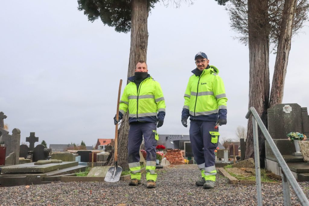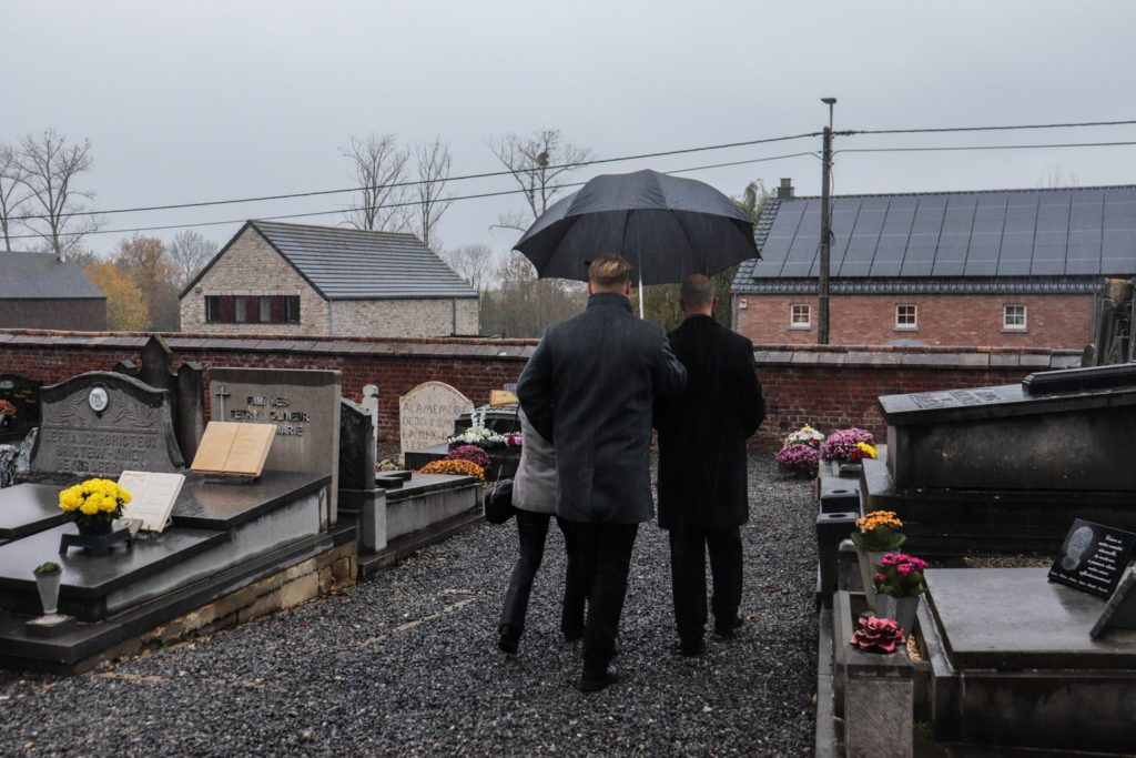 En ce matin pluvieux, la journée commence par une tournée des différents cimetières. Samuel Bairin, fossoyeur de la commune et son bras droit Laurent assurent l’entretien de tous les sites. Depuis l’interdiction de certains herbicides, les herbes autour des tombes doivent être éliminées de manière manuelle, une tâche minutieuse et quotidienne. Samuel et Laurent ont une grande machine qui permet de travailler plus rapidement mais comme il pleut, ils sont bien obligés d’utiliser des bombonnes de gaz. Ils retirent également les fleurs fanées et les herbes envahissantes sur certaines tombes pour maintenir la propreté, même si, en principe, cet entretien revient aux familles. Dans le cimetière, l’insalubrité et le vandalisme se font malheureusement remarquer, ce qui exige une vigilance constante. Au milieu de ce décor parfois malmené, certains continuent de venir, jour après jour comme ce vieux monsieur qui vient visiter la tombe de sa femme tous les jours à deux reprises.