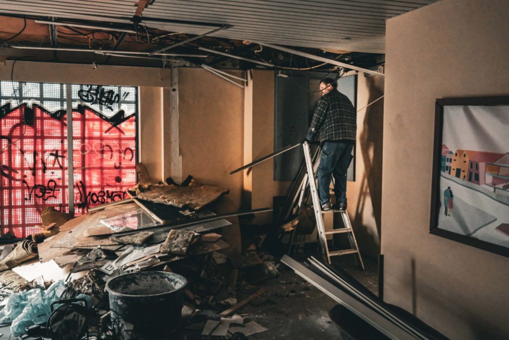 La Hooghuis, maison emblématique de Doel, est en rénovation depuis maintenant deux ans. Un autre groupe d’ouvriers y travaillent régulièrement depuis le lancement du projet. Contrairement au commissariat, les changements sont déjà visibles. Certaines pièces ont déjà retrouvé une nouvelle structure, tandis que d’autres nous rappellent l’état passé de la bâtisse. « Les travaux avancent bien, mais il reste énormément à faire », déclare l’un d’eux. Malgré l’incertitude sur la date de fin des travaux, il se dit satisfait du travail accompli. « C’est un bâtiment important pour Doel. »