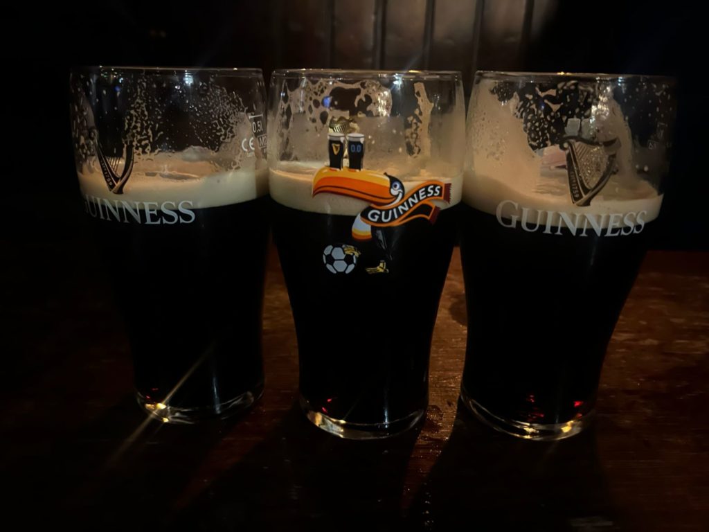 Il pose la Guinness sur le comptoir. Sláinte. (Santé en gaélique).
