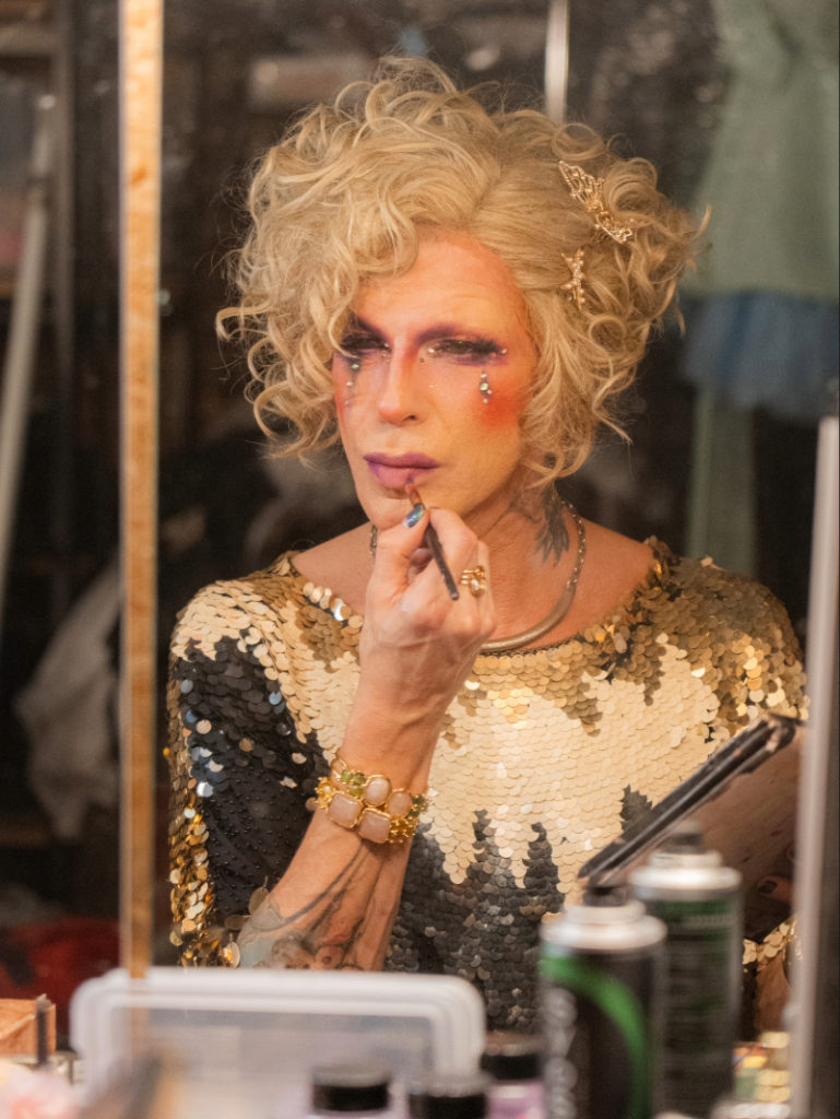 Sur la chaise en face, Super Daisy Bitch enfile sa perruque aux boucles blondes et parle de son autre vie en tant que réalisateur à la RTBF. Depuis l’arrivée du gouvernement Arizona, elle a aussi perdu une part importante de ses contrats dans l’audiovisuel, où plusieurs productions ont été freinées ou reportées. « Avant je n’avais pas du tout cette pression, maintenant je sens que les fins de mois deviennent compliquées. » Alors même en multipliant les scènes, il serait impossible pour elle de vivre uniquement du drag. « Je ne peux pas être partout, je pourrais essayer de me lancer à temps plein, mais ça serait compliqué, et j’aurais forcément besoin du statut d’artiste. »
