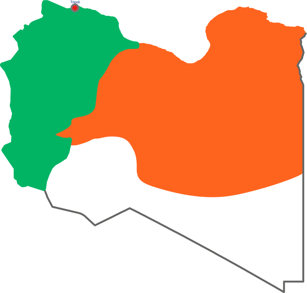 • À l’ouest, le Gouvernement d’union nationale (GNA), reconnu par l’ONU.