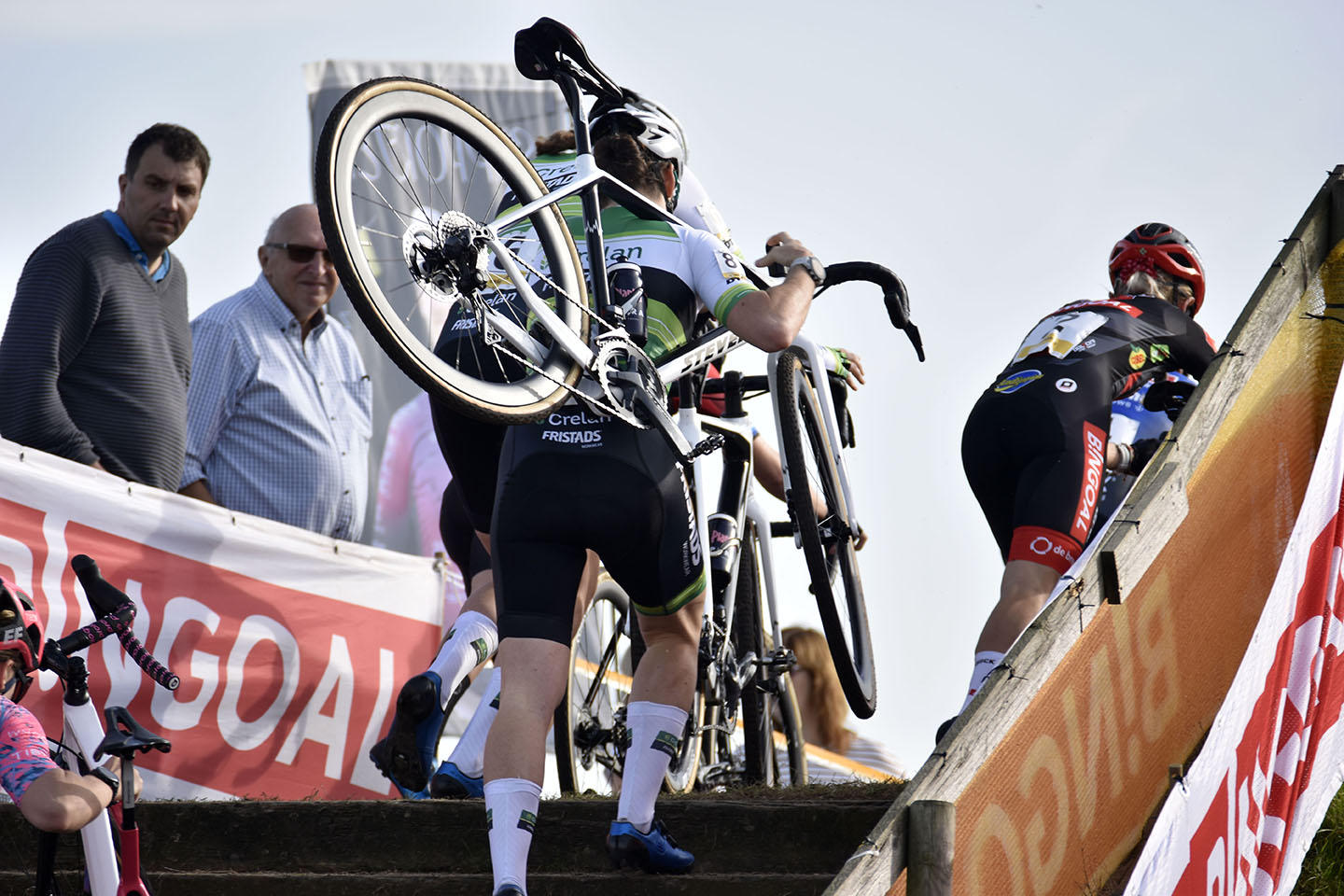 29 octobre, Ruddervoorde, petit village au sud de Bruges, trois heures avant le départ, l’équipe de Crelan-Fristads est déjà en place. Les caravanes sont disposées selon le plan, les mécaniciens préparent les vélos, les rouleaux et autre matériel technique, le directeur sportif explique la tactique du jour aux coureuses, les soigneurs préparent déjà l’après-course, les supporters viennent aux nouvelles de Marion, leur championne…