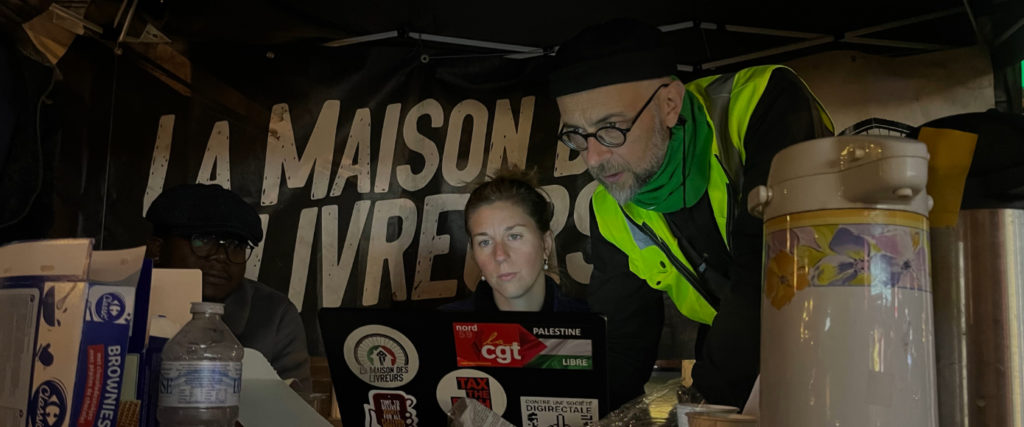 Son cas n’est pas isolé. Tout au long de la permanence, des livreurs se succèdent sans cesse sous cette tente. Catherine, syndicaliste des jeunes FGTB, est également venue prêter main forte ce soir aux côtés de Martin et Camille. « Il y a un réel besoin », lance ce dernier, le nez devant son ordinateur. « Les travailleurs sont atomisés. Ils n’ont pas de lieu de socialisation où ils peuvent boire un café, faire du lien, s’organiser collectivement pour améliorer leurs conditions de travail. C’est ce qu’on essaye de leur offrir ».