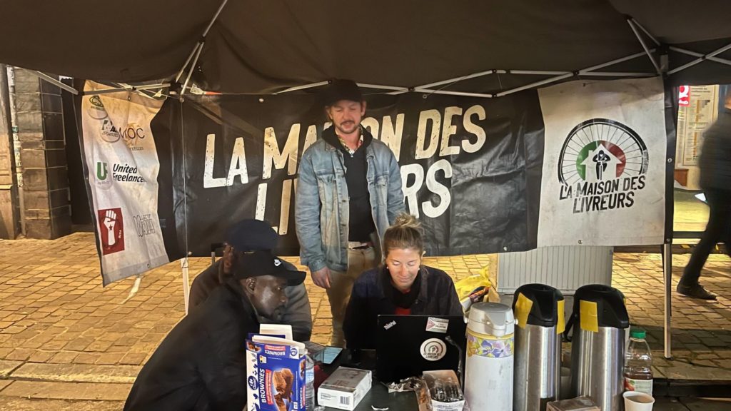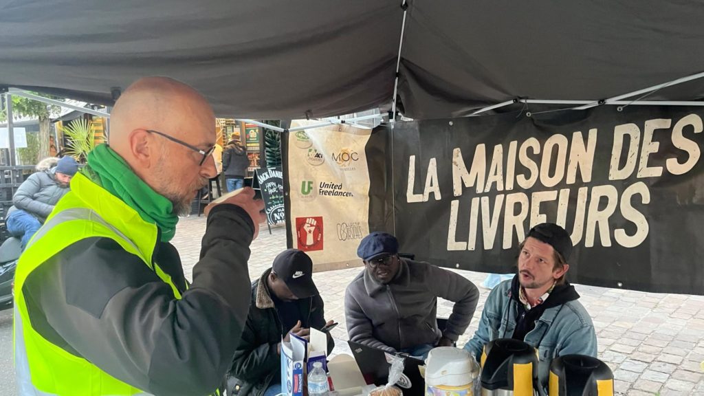 Camille et Martin sont membres de la Maison des Livreurs. L’association, créée en octobre 2022, vient en aide aux livreurs pour pouvoir leur offrir une oreille attentive. Tous les jeudis soir, ils posent leur tente à un endroit de Bruxelles prisé des coursiers. « L’équipe intervient pour soutenir les livreurs lorsqu’ils rencontrent des difficultés individuelles, qu’elles soient ou non liées à la plateforme de livraison. Il peut s’agir de factures impayées, de l’enregistrement d’un nouveau moyen de locomotion ou encore de l’accompagnement de ceux qui ont été déconnectés de leur application sans motif valable », relate Martin.