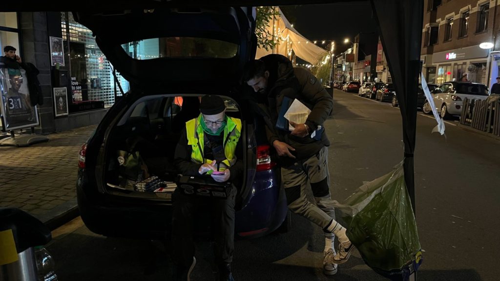 La soirée se termine aux alentours de 21h30 pour les membres de l’association. Enfin presque. Alors que la tente se replie, un habitué arrive. Max – nom d’emprunt – réajuste ses lunettes et essuie une goutte de sueur. Il vient souvent donner un coup de main pour offrir des conseils à ses compères. Mais ce soir, il est contrarié. « Je n’ai fait que 50 euros ce soir et je n’ai même pas encore mangé. Je vais devoir continuer jusqu’à 22h au moins ». Camille tente de le rassurer un peu, lui propose un biscuit et lui tend une clope. Max la grille et s’empresse de récupérer la commande que le Quick d’en face vient de préparer.